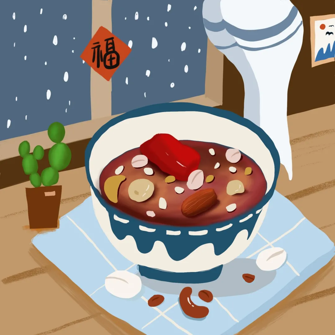腊八节,即每年农历十二月八日,又称为“法宝节”“佛成道节”“成道会”等。本为佛教纪念释迦牟尼佛成道之节日,后逐渐也成为民间节日。腊八粥,又称“七宝五味粥”、“佛粥”、“大家饭”等,是一种由多样食材熬制而成的粥。腊八粥的最早文字记载在宋代。南宋吴自牧《梦梁录》载:“此月八日,寺院谓之腊八。大刹等寺,俱设五味粥,名曰腊八粥。”我国喝腊八粥的历史,已有一千年以上了。每逢腊八这天,不论是朝廷官府、寺院还是黎民百姓家都要做腊八粥。到了清朝,喝腊八粥的风俗更是盛行。