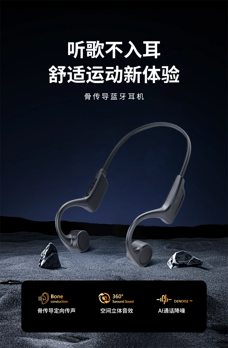 真骨传导开放双耳 聆听世界骨传导定向传声,不开孔不漏音双耳开放,耳道如呼吸般清爽透气